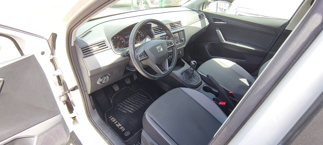 Seat Ibiza Style 1.0TSI, 115cv, 23120km, matriculación Marzo 2020, cambio manual 6 marchas, esta equipado con Pantalla frontal, Radio cd/USB/SD con mandos en volante, control de velocidad, BLUETOOTH, control de crucero, climatizador, asientos traseros isofix (sujeción rápida asientos niños), sensores de luces y lluvia automáticos, faros de niebla delanteros, Luces diurnas, llantas aleación 16», luces led traseras, etc…